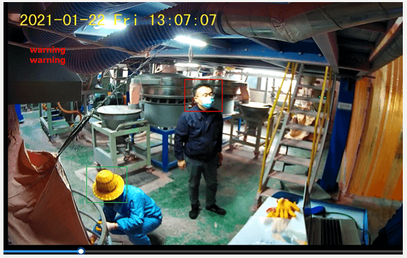 A场景是某工作区域内可能会有员工未正确穿戴劳保用品(安全帽),需要相机自动抓拍、报警并保存违规视频